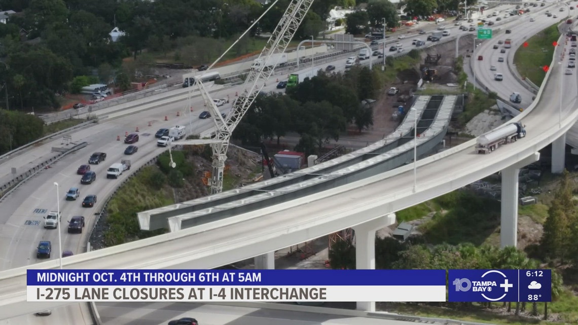 This week in Tampa, crews installed new steel girders at the I-275 and I-4 interchange, closing key movements to protect drivers while cranes set beams. The project involves constructing a new ramp from I-275 southbound to I-4 eastbound; the current ramp will be converted into a direct exit to Ybor City. Only one lane of I-275 southbound remains open until early Monday, and the overall interchange project is expected to be completed in 2027.